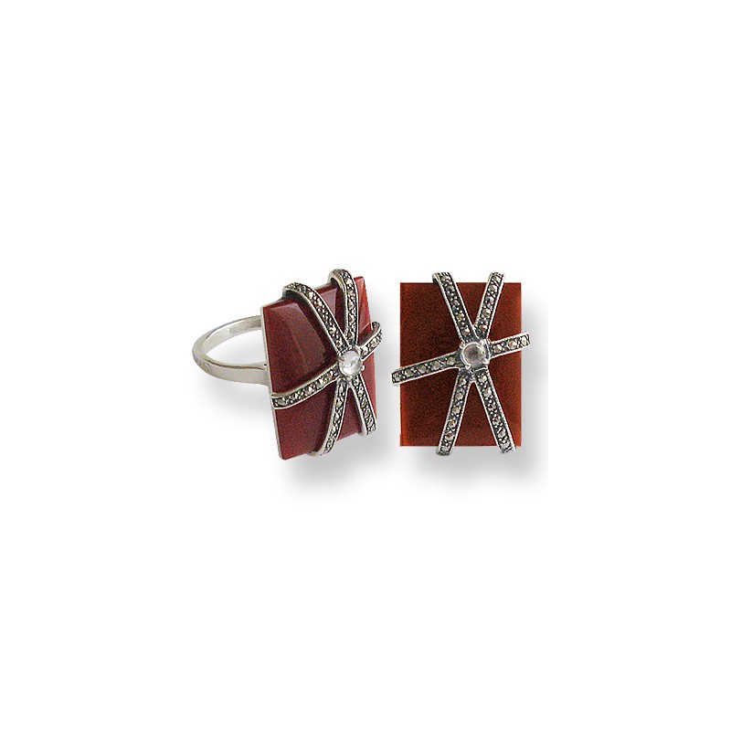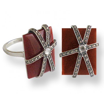 Bague argent 925 Cornaline + Oxydes de zirconium + Marcasites