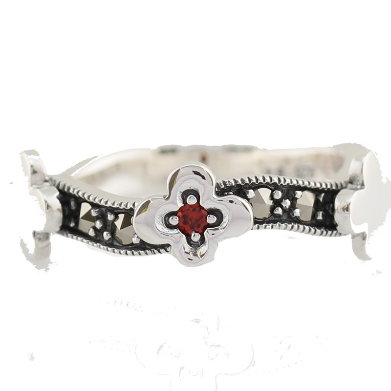 BAGUE EN ARGENT 925 GRENAT - MARCASSITES