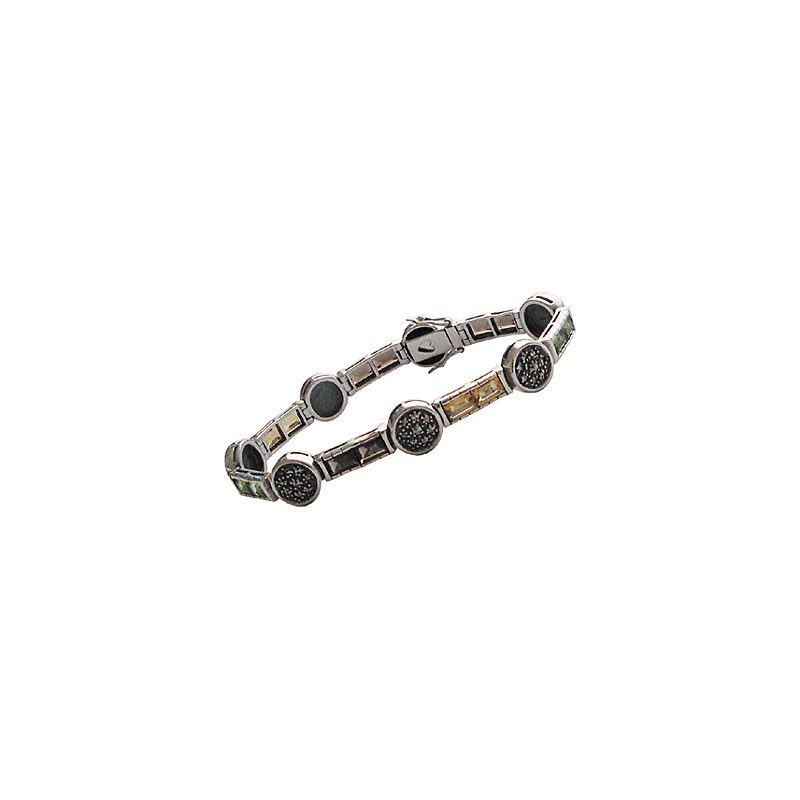 Bracelet argent 925 Améthystes + Citrines + péridots + Marcasites