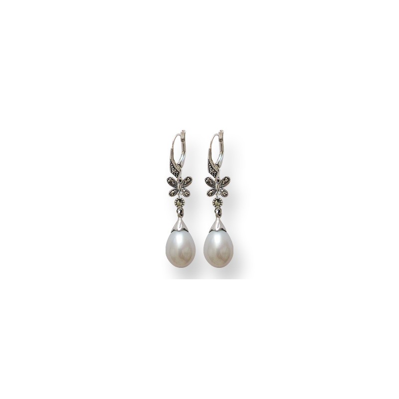 B.O argent 925 Perles de culture + Marcasites