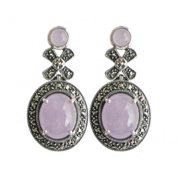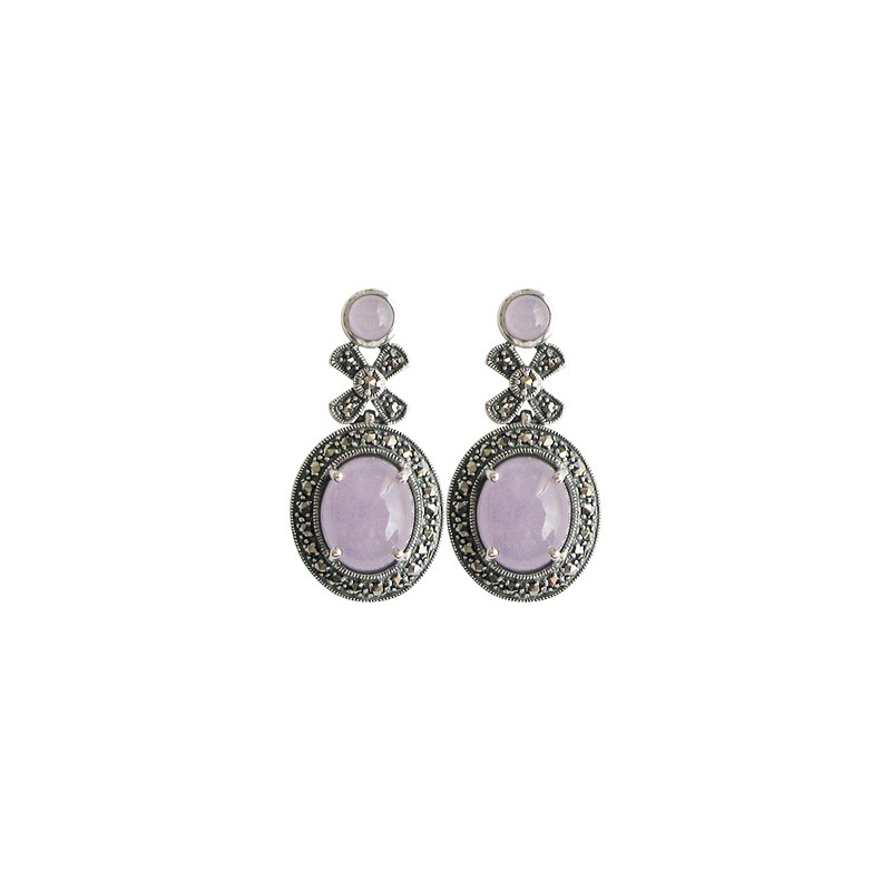 BOUCLE D'OREILLE ARGENT 925 JADE LAVENDER + MARCASSITES