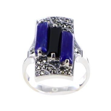 Bague en Argent 925° (Lapis lazuli - Onyx - Marcassites)