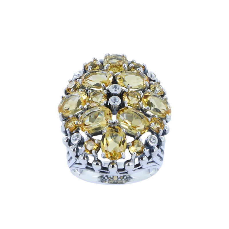 Bague en Argent 925 (Citrine - Oxyde de Zirconium)