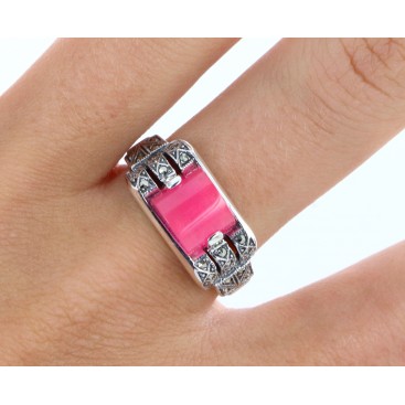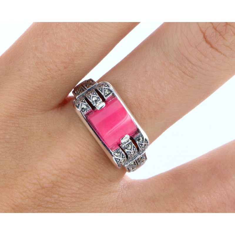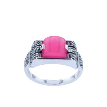 Bague en Argent 925 (Quartz Rose - Marcassite)