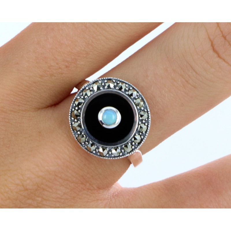 Bague en Argent 925 (Onyx-Opale-Marcassites)