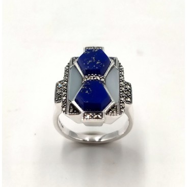 BAGUE ARGENT 925 (LAPIS LAZULI - NACRE - MARCASSITES)
